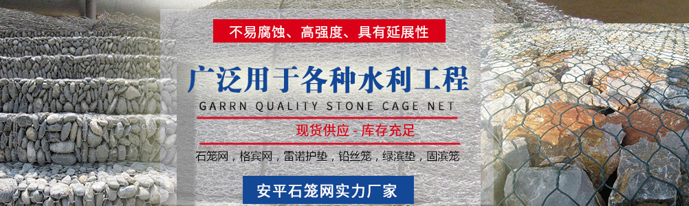 本公司主要生產:石籠網、格賓網、重型六角網、鍍高爾凡格賓擋墻、雷諾護墊、綠濱墊固濱籠、耐特籠、鉛絲石籠、格賓石籠、電焊石籠網、鍍鋅石籠網、河道石籠網、包塑石籠網、勾花網、高爾凡石籠網、三擰石籠網、五擰石籠網等,可用于保護和支持河道、海堤、山坡、路橋、水庫及其他土木工程, 是防洪固堤工程的上好材料。以可靠的質量,滿意的售后服務深受新老客戶的好評。
